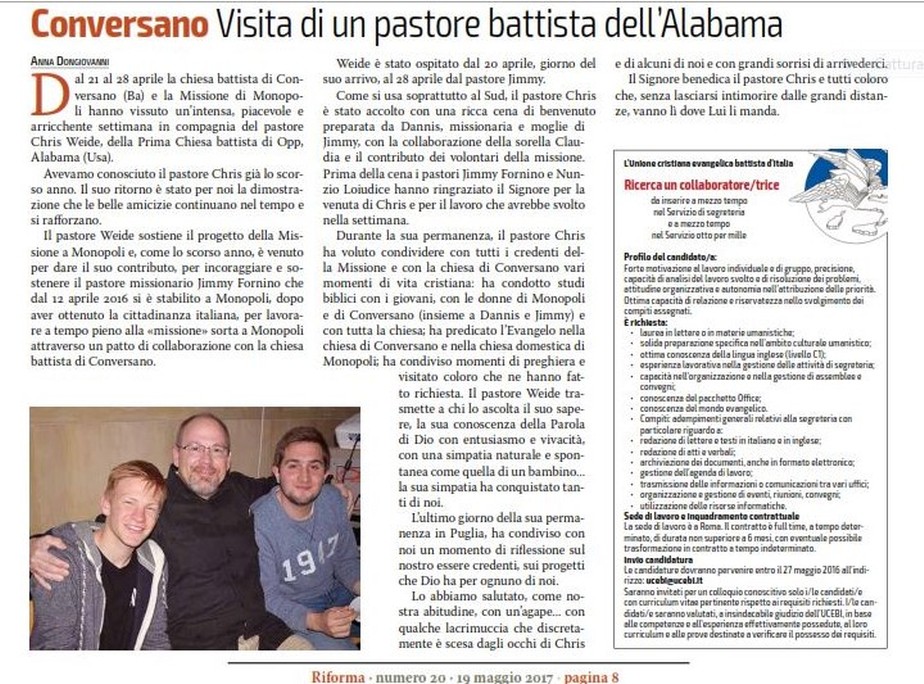 Conversano. Visita di un pastore battista dell' Alabama - Aceb_PugliaBasilicata